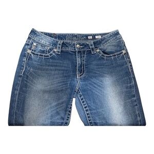 Classic Adorned Miss Me blue denim boot cut design. Perfect for casual wear.