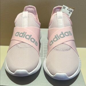 Experience the perfect blend of style and comfort with these Adidas sneakers, featuring a soft pink and white colorway. The slip-on design with an elastic lacing system ensures a snug fit, while the cushioned midsole and textured rubber outsole provide excellent support and traction. Crafted with a modern, minimalist aesthetic, these sneakers are ideal for both athletic activities and casual outings.
