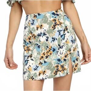 Lulus Full Flower Beige Multi Floral Print Notched Mini Skirt - XS NWT
