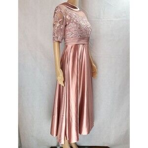 This elegant pink wedding dress features intricate lace detailing and a satin finish. Perfect for making a statement on your special day.