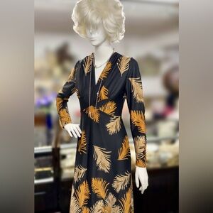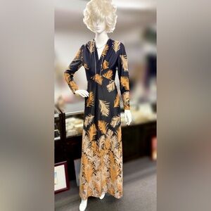 Vintage Maxi Dress Peacock Feather 70’s Print, Easy to Wear in PERFECT Condition
