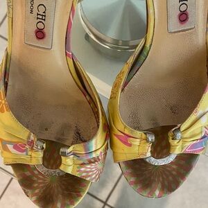 Bright yellow heels with a stylish open-toe design. Features a chic ankle strap for added elegance.