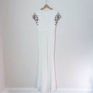 Mac Duggal Beaded Cap-Sleeve Jersey Gown White