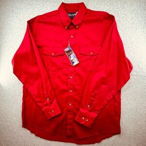 NWT Wrangler Painted Desert Western Shirt 17.5-36 Red Button-Down X-Long Tails