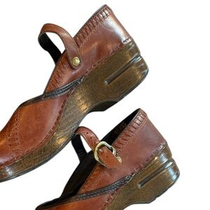Women’s Dansko Mary Jane Shoes Platform Heel Brown Tan Dark Trim SIZE 37 7 7.5
