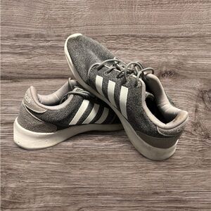 Sleek gray design with white stripes. Comfortable Cloudfoam cushioning. Ideal for daily wear. Great preloved condition! Needs some cleaning on the soles.