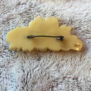 Vintage carved celluloid. Bracelet & pin set. Light yellow color. Rose pattern.