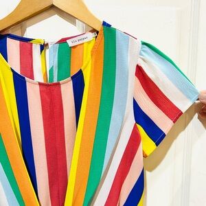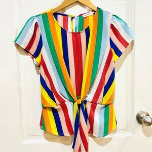 Blu Pepper Rainbow Striped Tie-Front Peplum Top Size S