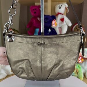 Brushed gold shoulder straps with leather inserts