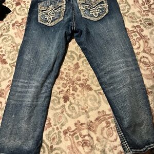 Elevate your wardrobe with these chic blue jeans featuring intricate embroidery on the back pocket. Perfect for any casual outing.