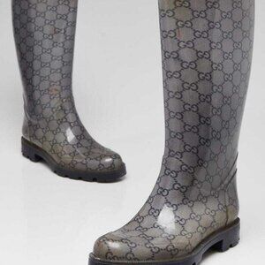 Gucci Grey GG Rubber Edimburg Rain Boots Size 4.5/35