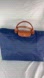 LONGCHAMP Le Pliage Navy Blue Canvas Brown Leather Trim Travel Tote Bag