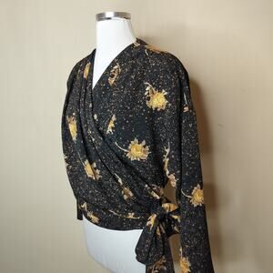 Pepe floral spotted long sleeve wrap top. Size M. Polyester. (22408)