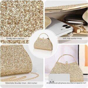 Eye-catching Design: The sparkly purse clutch boasts a glamorous glittery finish, enhancing the elegance of any outfit; switch between a handbag, clutch, or shoulder bag with the detachable chain strap.