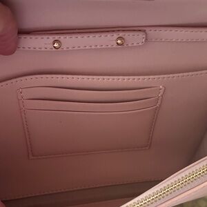 Chic pink clutch with a stylish gold clasp. Perfect for evening outings. New without tags. Never used. Beautiful gold chain strap.