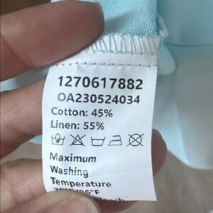 Material content is linen and cotton.