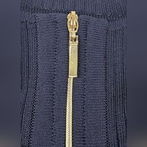 Misook Size XL Acrylic Zipper Cardigan Tan/Navy Horizontal Stripes Like New