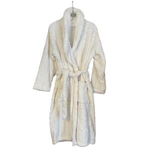 Pottery Barn Unisex NEW Size Medium Plush Cable Robe Ivory NWT