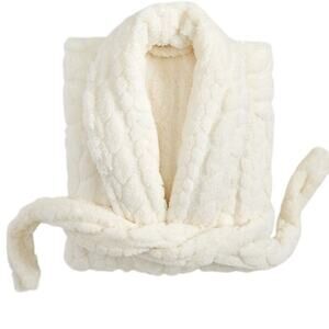 You'll love this Pottery Barn Unisex Plush Cable Robe in Ivory, size Medium! It's brand new with tags and ready to bring cozy comfort to your home. This robe is perfect for lounging around the house.
