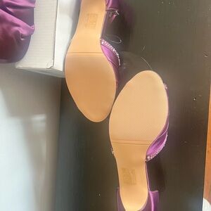 Chic deep purple/plum satin heels. Nina plum clutch. Adorned with sparkling accents. Ideal for elegant events. Size 8 heels