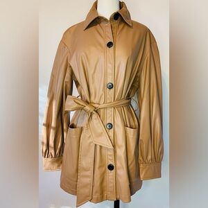 Zara Women’s Camel Faux Leather Belted Oversized Shirt/Jacket size Small!