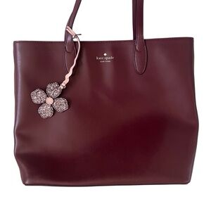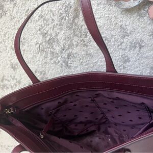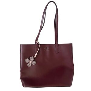 Kate Spade Kerri Tote Bag Leather Burgundy Purple Flower Charm Preppy Classic