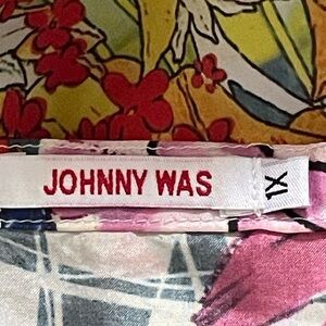 Johnny Was Theda Silk Tunic Top Sunflower Yellow Purple Boho 1X