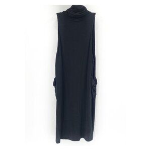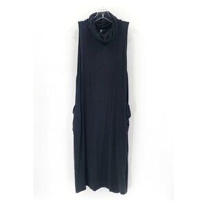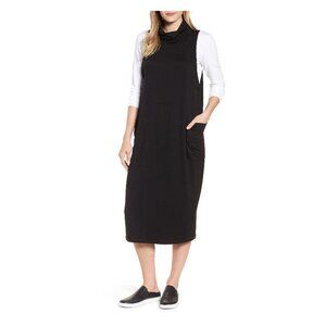 EILEEN FISHER Black Cowl Neck Sleeveless Knit Midi Dress Pockets