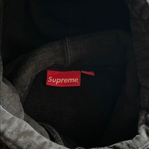Elevate your look with this Supreme hoodie. Features a striking artistic print. Ideal for everyday wear. Has a slit in back and a small hole. Both pictures.