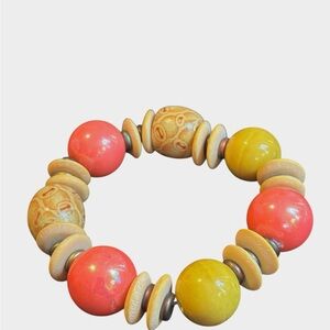 Add a pop of color and culture to your outfit with this bold 3-piece stretch bracelet set. Featuring large wooden beads in vibrant coral pink, mustard yellow, and hand-carved tribal patterns, these bracelets are lightweight yet statement-making. Each piece is designed with stacked disc accents and unique textures, giving you that effortless bohemian vibe.