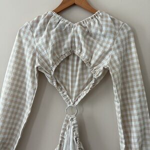 Petal and Pup Beige Cut Out Gingham Dress 100% Cotton Mini Puff Sleeves Size 4