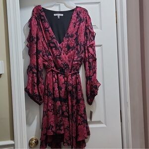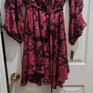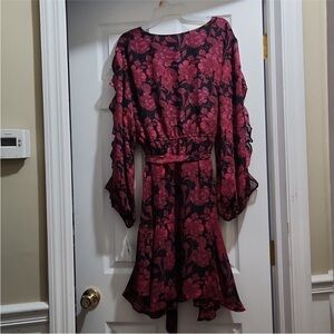 Danny & Nicole Black and Pink Floral Long Sleeve Dress