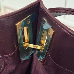 Burgundy Canvas with Printed monogram, gold brass hardware with flat Handle