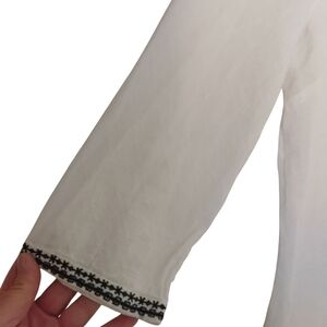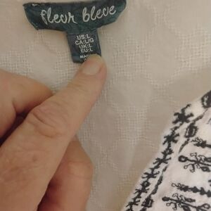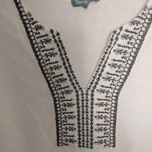 Fleur Bleue Women's L White Blue Embroidery 3/4 Sleeve Tunic Top