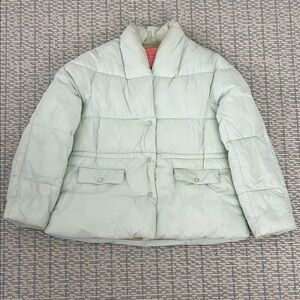 A corduroy collar punctuates this streamlined, diamond-quilted jacket with an extra element of timeless sophistication. Barely worn- bust measures approximately 21” and jacket measures approximately 25” from top to bottom.