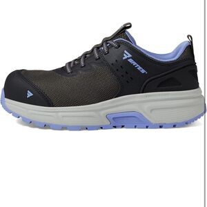 Bates safety shoes with a sleek black design. Accented with lavender details. Perfect for reliable protection and comfort.