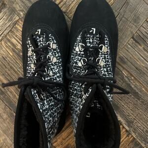 LARROUDE ANKLE BOOTS. These boots marry comfort and functionality with a faux-shearling interior and all-weather exterior. Vail Boot In Black Tweed and Suede.