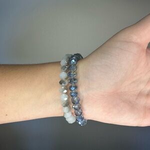This elegant bracelet set features shimmering silver and blue beads, perfect for adding a touch of sophistication to any outfit. Ideal for both casual and formal occasions.