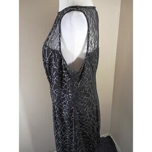 This size 16 sheath dress is sleeveless and has a sheer feature that adds a touch of elegance to the classic city and clubwear themed outfit. The dress is perfect for all seasons, including winter, summer, fall, and spring. Get ready to turn heads at your next event with this stunning American Living dress. Pit to Pit measures 20", waist 36, 37.
