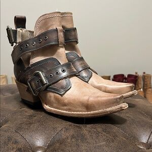 Never worn Freebird Blake sandals. The heel was shortened 1/2 inch by a professional cobbler. Very cute very comfy!!