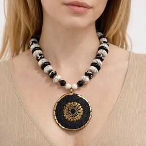 Add a touch of elegance with this stunning green beaded necklace. Perfect for any occasion.