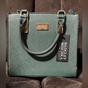 Vibrant cherry red leather satchel. Features elegant straps and signature charm. Ideal for stylish outings. Bag needs cleaning on the suede sides, peeling inside the bag on the sides. Magnetic closures.