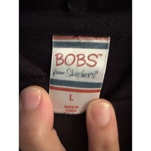 BOBS by Sketchers Black Cat Hoodie Sweatshirt Fasten Kitty Pouch Size Large