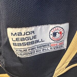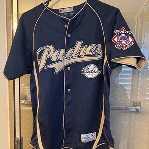 Official Padres kids jersey in navy and gold. Perfect for young fans to show their team spirit.