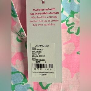 Lilly Pulitzer Brinelle Plumes In Bloom Notch Neck Elbow Puff Sleeve Blouse NWT Size L