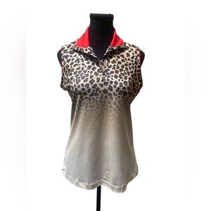 White scrub top with short sleeves and a zip front. Features two front pockets.