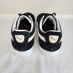 Step out in style with Puma men's black and white suede leather sneakers. These shoes offer a sleek design and comfortable fit, perfect for everyday wear. new in box only tried on #106
