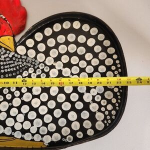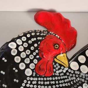Vintage, hand painted rooster tray that appears to be lacquer over paper mâché.