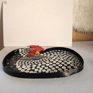 Rooster Tray Large Country Handpainted French Farmhouse Chic Decor Black Vintage