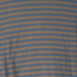 Chic long sleeve tee with blue and tan stripes. Ideal for everyday wear.